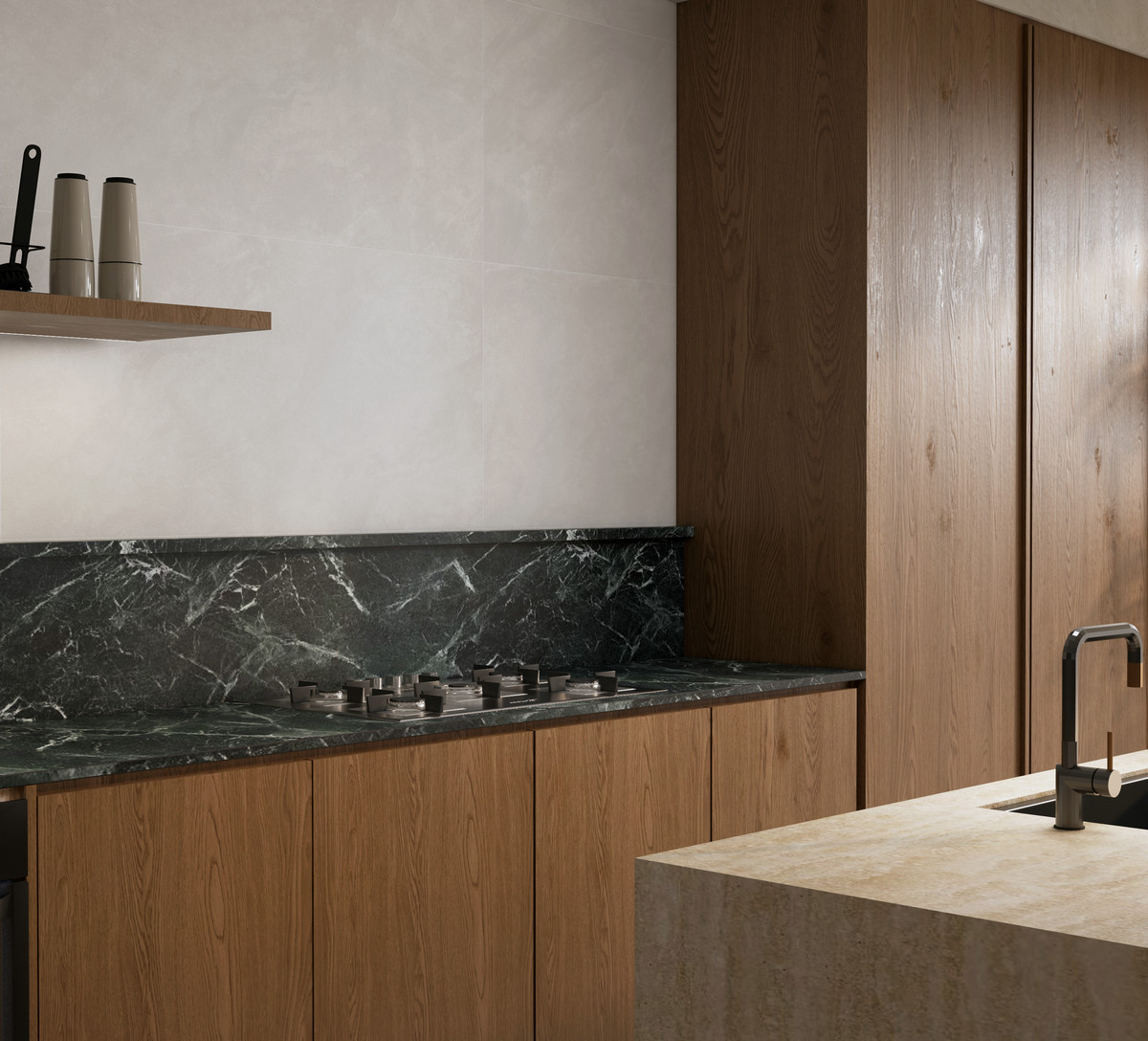 以柔和的浅灰为主色调,恰似清晨山林间弥漫的薄雾,带着一丝轻盈与静谧,为空间营造出舒缓、平和的氛围。其纹理细腻且富有变化,如同雾气在微风中悄然流动,隐隐绰绰,似有还无。